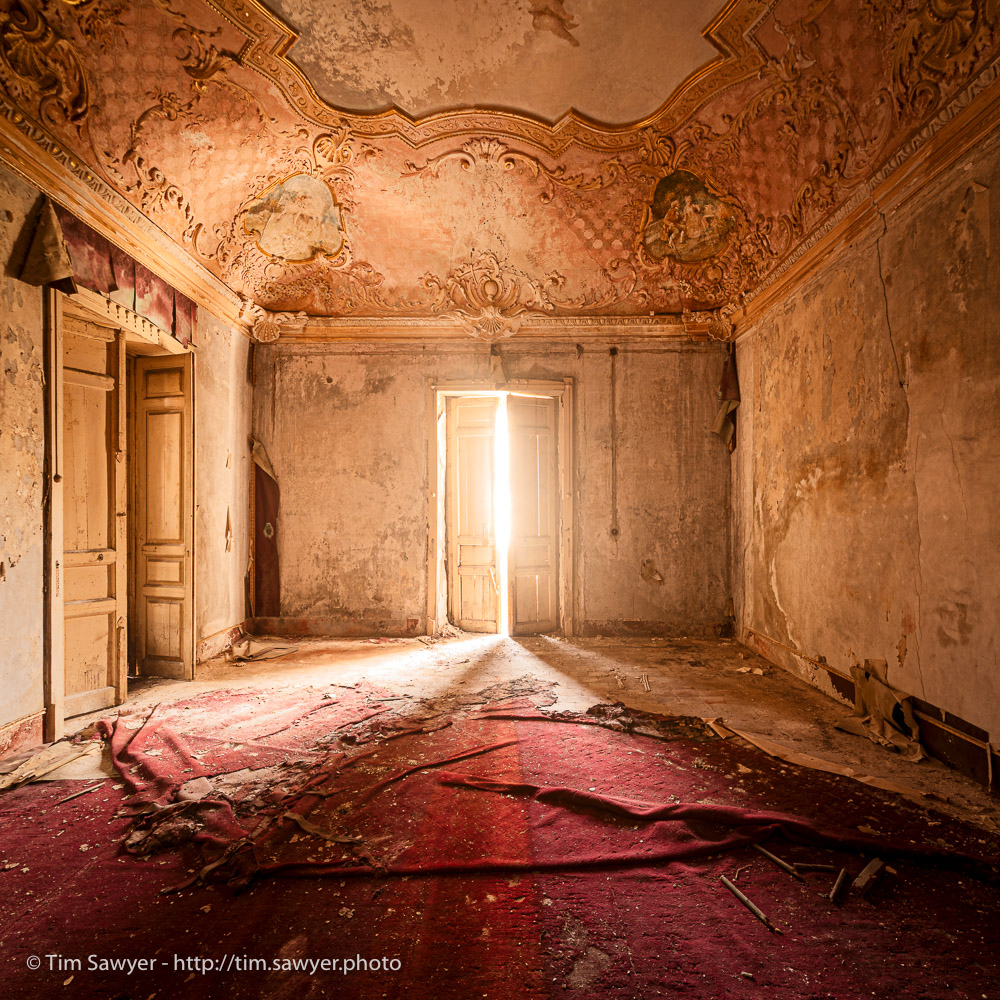September saw us flying out of Stanstead to Sicily to take in an architecture tour with James Kerwin. We had a good time, and got some great images including this one of a decayed red room. We came away from the holiday with a need to find a higher class of door image!